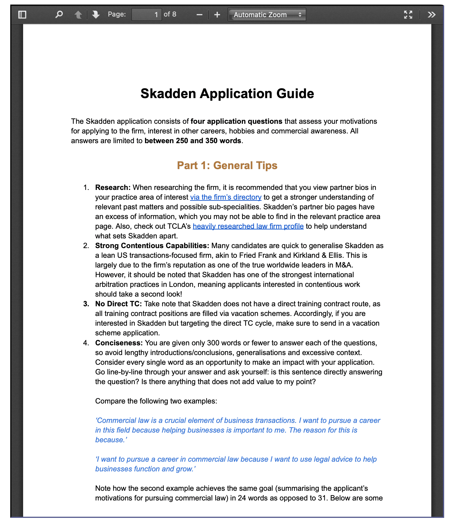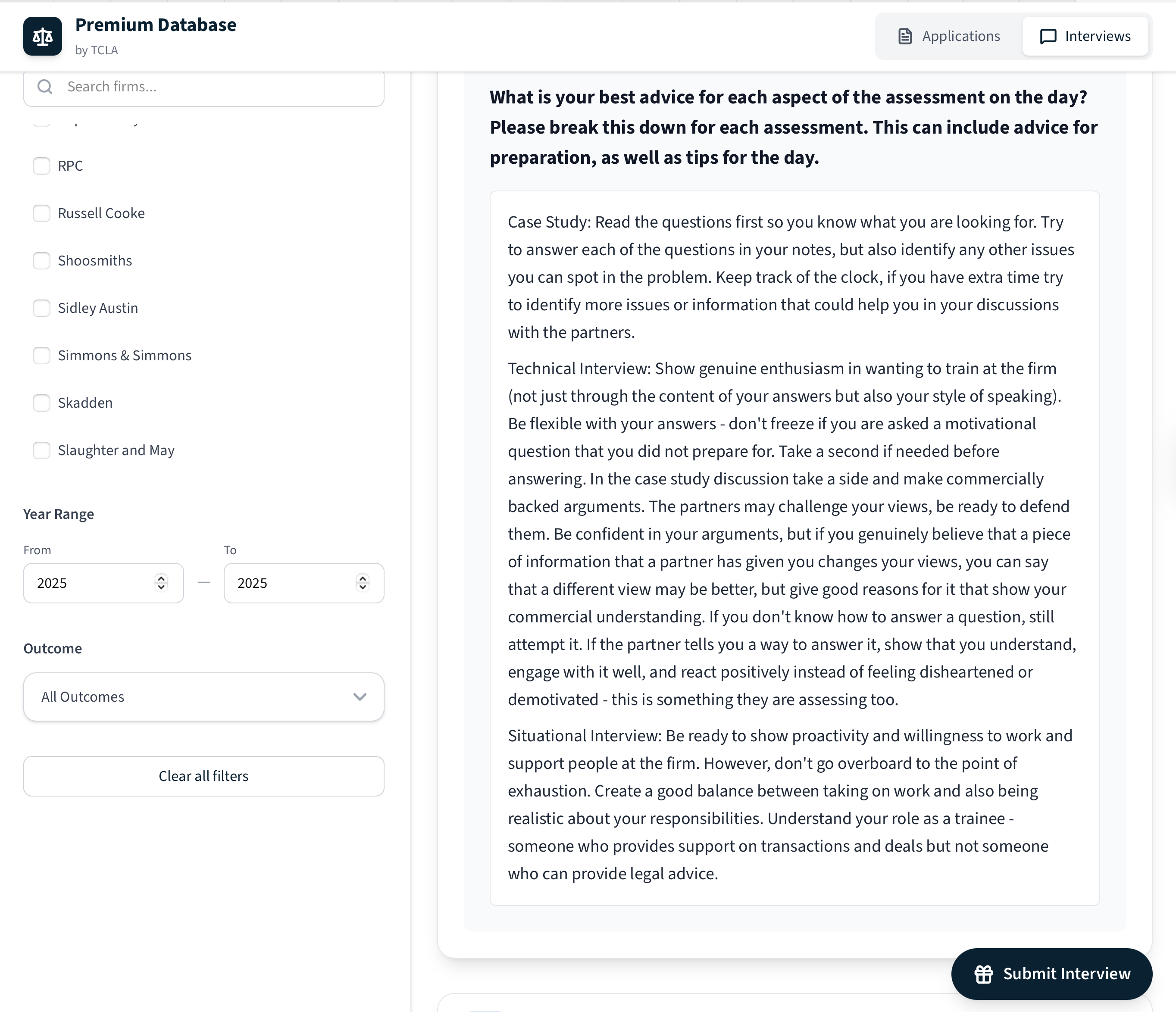 What you’ll find within TCLA is specific information, tailored to the law firm you are applying to.
